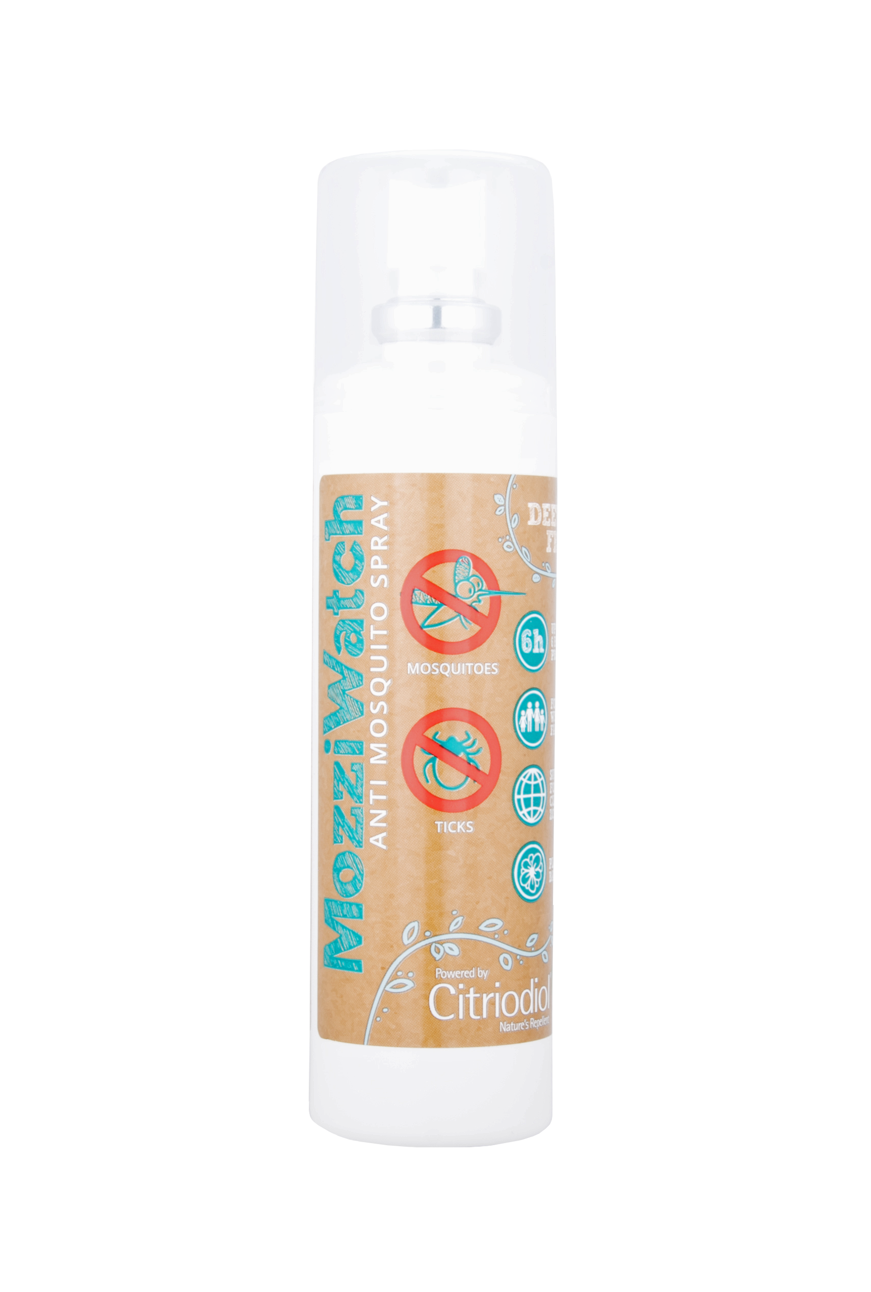 MozziWatch Spray sisaldab looduslikku toimeainet – sidruneukalüptiõli ning on DEETi vaba. Erinevalt eeterlikest õlidest on sidruneukalüptiõli tõhusus teaduslikult tõestatud. Toode on meeldiva lõhnaga, see ei riku plastikuid ega jäta jälgi riietele. Looduslik vahend mis võib asendada keemilisi tõrjevahendeid.